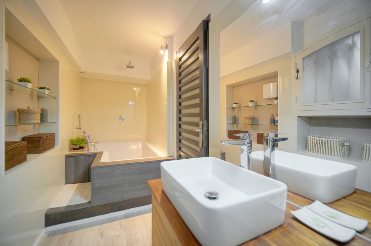 The exteriors are a real asset: a large private terrace and garden invite you to enjoy the Côte d’Azur climate all year round. In addition, a private cellar bring comfort and practicality.