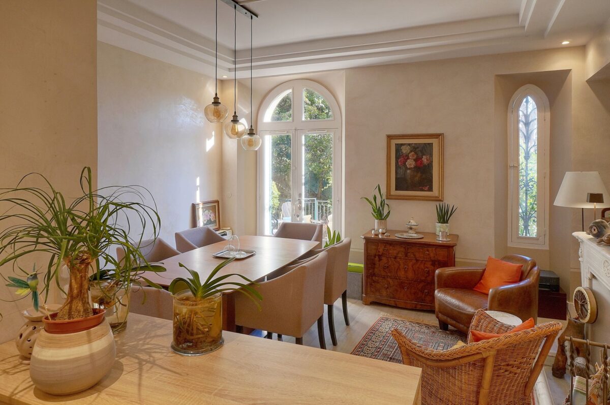 Located in a late nineteenth-century bourgeois residence, this triplex apartment of approximately 102.9 m² (1,108 sq ft) seduces with its charm and generous volumes. Nestled in a quiet residential area, only a few minutes from the centre of Cannes and it’s beaches, it combines character with modern comforts.Spread over three levels, the property includes a large living room bathed in natural light, an adjoining dining room and an independent kitchen. You will be able to appreciate the high ceilings and the large bay windows that adds charm to this gem of a property.The sleeping area consists of two bedrooms, each completed by a bathroom/shower room, and their separate WC’S.