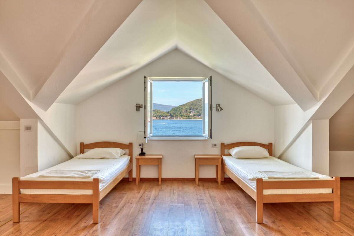 Nestled in the picturesque village of Lepetane, this stone villa with a landscaped garden occupies a prime seafront location. Spread across three levels, it harmoniously blends traditional Mediterranean character with modern comfort, offering spacious interiors and stunning views of the Adriatic.
