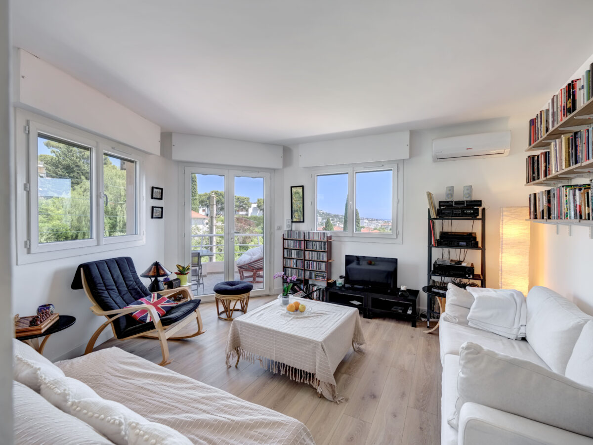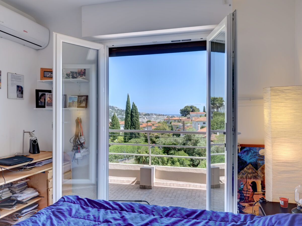 Wake up to sunlight and sea views from your spacious 22 m² southeast-facing terrace. Just minutes from Cannes, this stylishly renovated apartment offers privacy, comfort, and location in a peaceful residential setting.