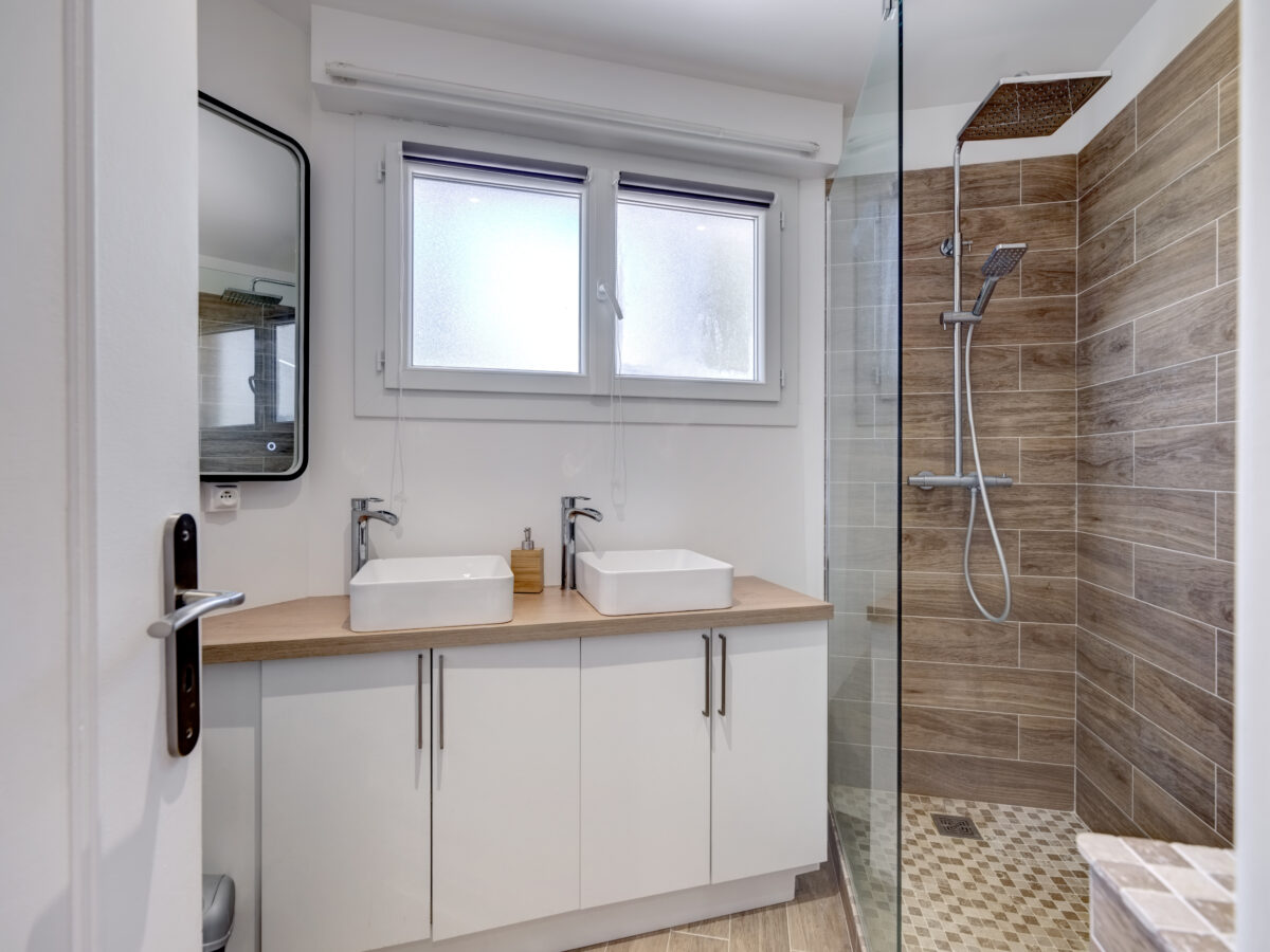 – Modern shower room with double sinks
